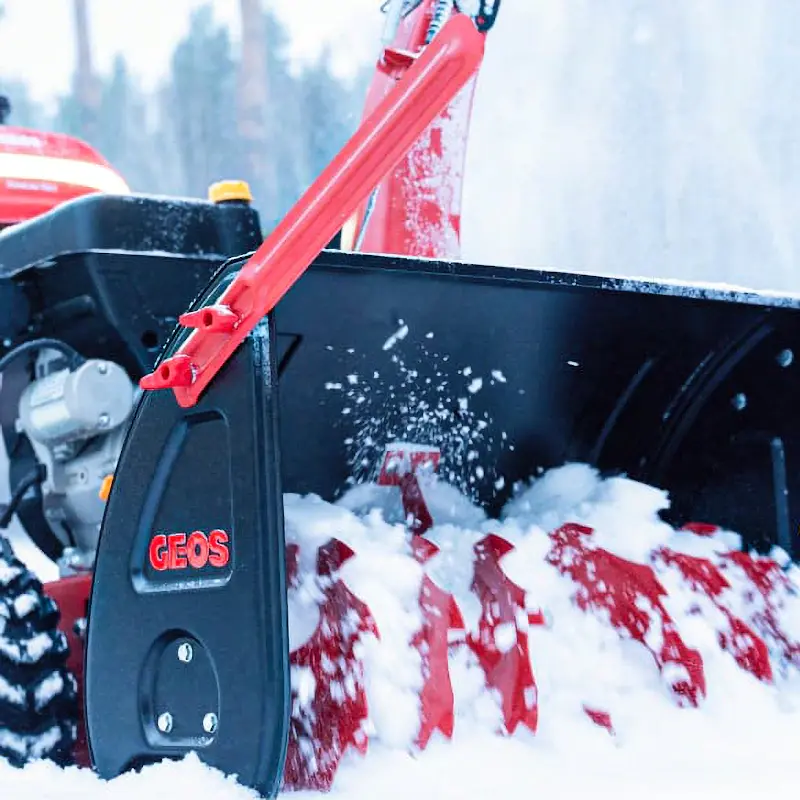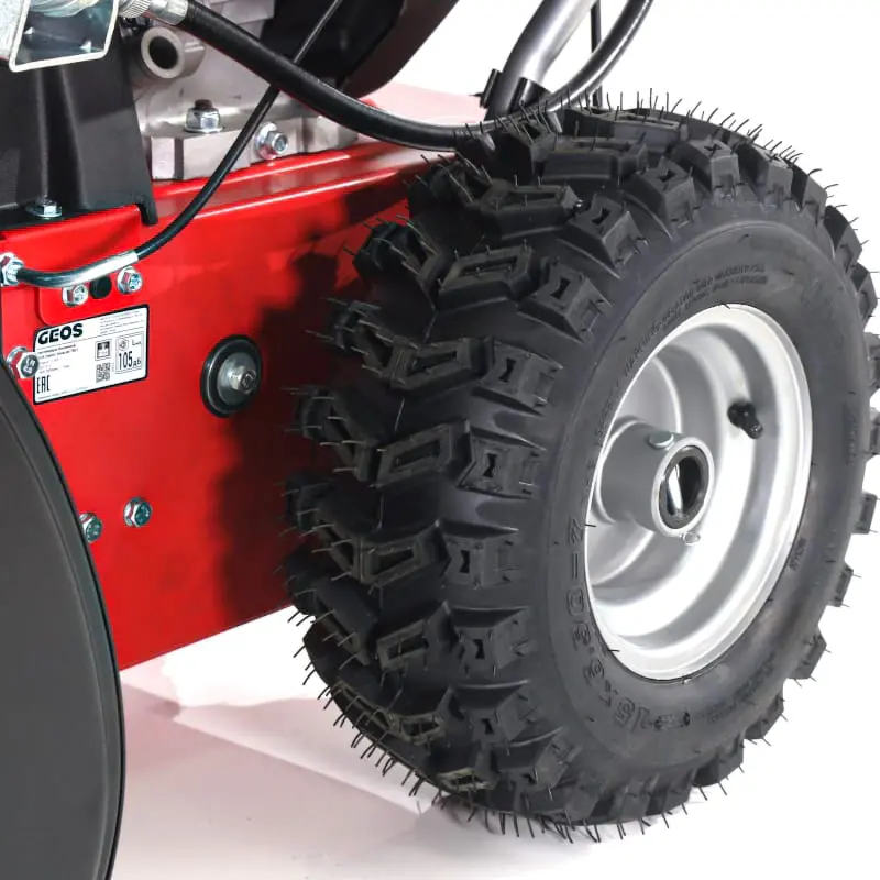 Бензиновый снегоуборщик Geos SnowLine 700 E оснащен мощным двигателем Lonchin OHV мощностью 11 л.с., который запускается ручным или электрическим стартером. Модель имеет шесть передних и две задние скорости, что позволяет выбирать оптимальный режим работы в зависимости от условий. Резиновые колеса с зимними шипами обеспечивают хорошую проходимость и маневренность на снежном покрытии.