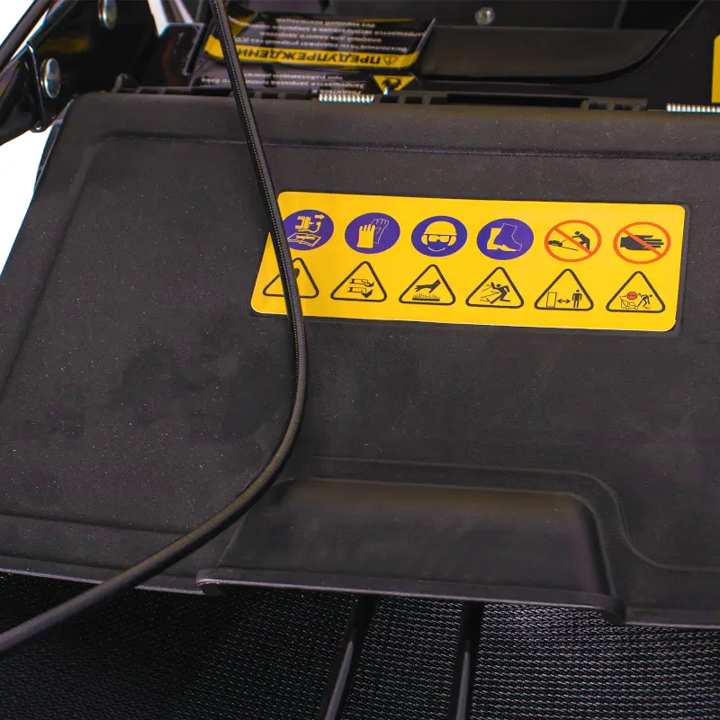 Режущая дека сделана из алюминия, что обеспечивает ударопрочность в случае попадания во вращающееся лезвие небольших камней. Это гарантирует долгий срок службы устройства.