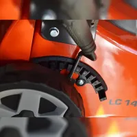 Газонокосилка Husqvarna LC 141C оборудована держателем провода питания, что обеспечивает безопасное скашивание травы без запутывания или перегиба кабеля, а также опасности запнуться о шнур. Элементы управления расположены на рукоятке устройства.
