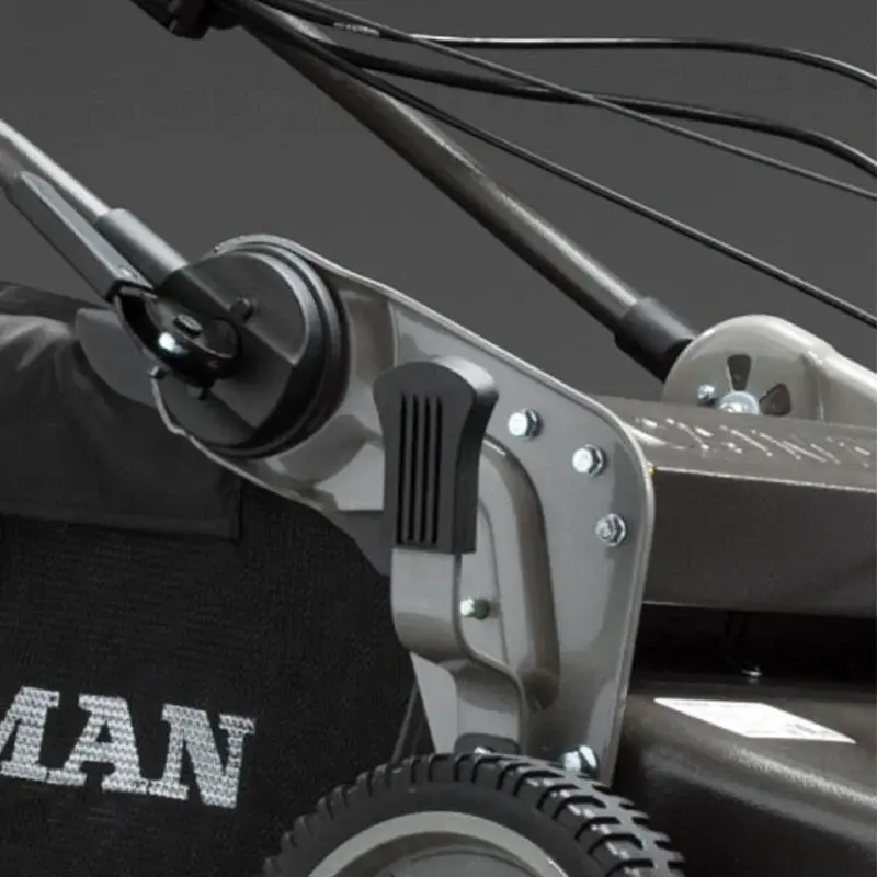 Бензогазонокосилка оснащена регулируемой рукояткой, соединённой с корпусом стальным кронштейном, позволяющим работать даже в условиях повышенных нагрузок. Благодаря удобному хвату управление устройством на неровной поверхности остаётся комфортным и эффективным.