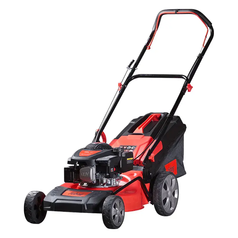 В бензиновой травокосилке установлен 4-тактный фирменный двигатель с повышенным моторесурсом, если сравнивать с аналогичными моторами соответствующей мощности. Это объясняется верхним расположением клапанов (OHV). У таких двигателей маленькая камера сгорания, что приводит к увеличенному индикаторному КПД.