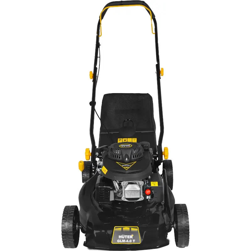 Бензиновая газонокосилка Huter GLM-4.0 предназначена для ухода за ровными газонами большой площади. Устройство оборудовано четырехтактным двигателем мощностью 4 л.с. с экономичным расходом топлива. Одной заправки топливного бака достаточно для обработки 900 м2 территории. Высота кошения регулируется одним рычагом у заднего колеса в диапазоне от 35 до 85 мм. Вместительный травосборник объемом 60 литров позволяет косить продолжительное время без остановок для его очистки. Верхняя часть двухсоставной рукоятки складывается для экономии места при хранении.