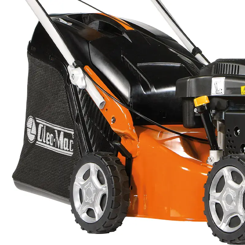 В газонокосилке установлен 4-тактный мотор EMAK K 500 с верхним расположением клапанов (OHV). За счет маленькой камеры сгорания он выдает высокий КПД. Двигатель бензогазонокосилки Oleo-Mac G 48 PK COMFORT PLUS расходует на 30 % меньше топлива, обладает повышенным сроком службы и увеличенным крутящим моментом, в сравнении с моторами у которых боковое расположение клапанов.