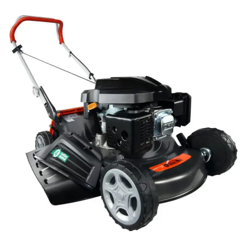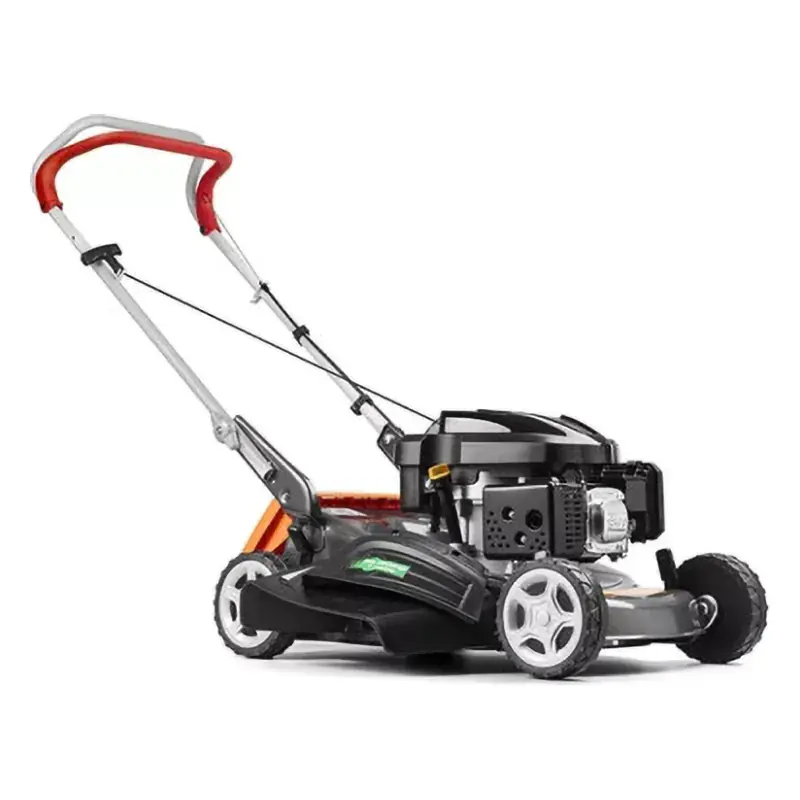 Бензиновая газонокосилка оборудована системой легкого старта, благодаря которой для вытягивания пускового троса не нужно прикладывать особых усилий. Обороты двигателя и дроссельная заслонка регулируются автоматически, поэтому элементы управления очень простые. Во время запуска и работы устройства нужно прижимать рычаг сцепления к рукоятке, а для остановки — просто отпустить. Каждое колесо оборудовано рычагом регулировки высоты кошения, который легко устанавливается в нужное положение одним движением. Поддерживаются три режима: скошенная трава либо измельчается и возвращается на газон в виде мульчи, либо выбрасывается назад или в сторону.