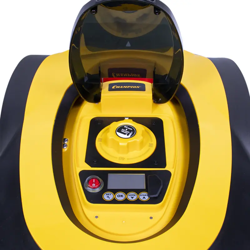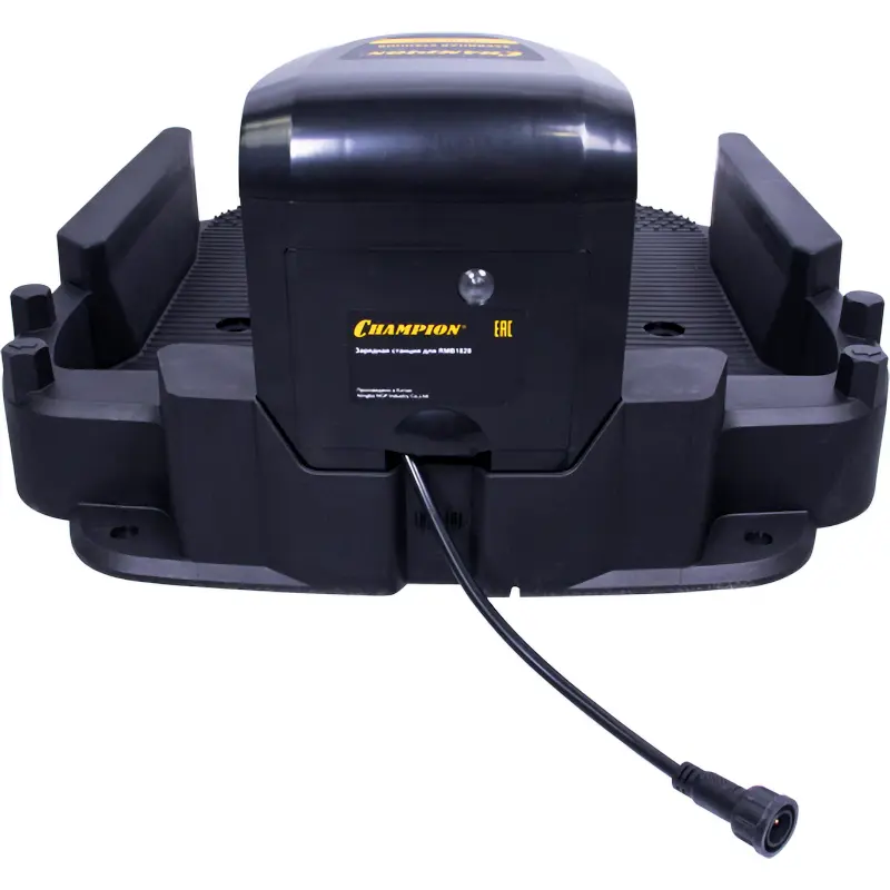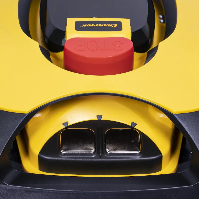 • Автоматическая подзарядка. Champion RMB1828 самостоятельно возвращается на станцию подзарядки при низком заряде батареи и при срабатывании датчика дождя.