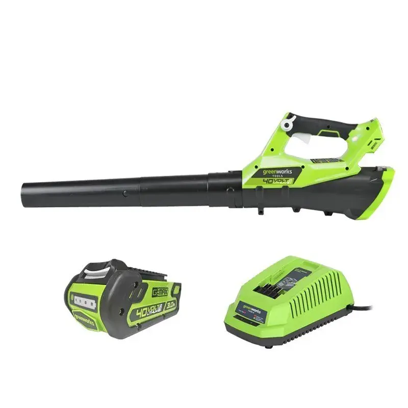 Аккумуляторный воздуходув Greenworks G40ABK6 - лёгкий ручной раздуватель, предназначенный для очистки территории от опавшей листвы, мелкого мусора и пыли. Отсутствие кабеля питания и малый вес конструкции делают его мобильным в использовании на территории любого типа, будь то городская среда или приусадебный участок. В комплекте поставляется аккумулятор на 6000 МАч и зарядное устройство к нему.