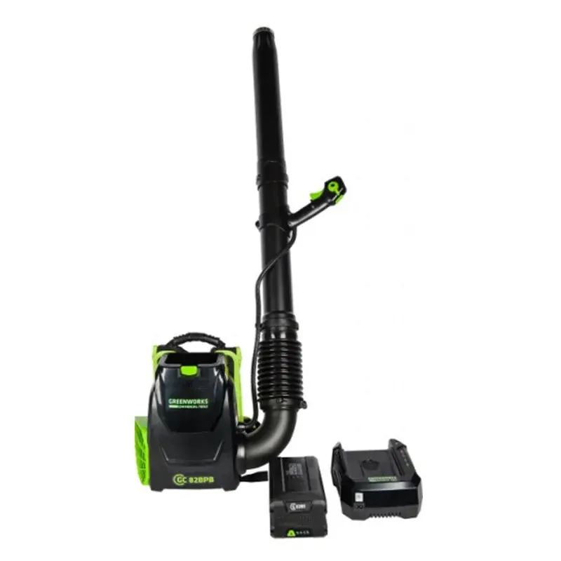Модель оснащена защитой двигателя от перегрузок, имеет две скорости для регулировки потока с плавной регулировкой на курке и фиксатором скорости потока воздуха, а также оснащается турбо-режимом. Патрубок имеет прорезиненную рукоятку. Она совместима с 82V аккумуляторной системой Greenworks и работает от 2,5 А/ч или 5 А/ч батареи.