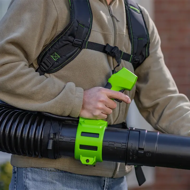 Аккумуляторная ранцевая воздуходувка Greenworks - мощное устройство для уборки придомовой территории и в саду. По скорости и объему воздушного потока соответствует бензиновым устройствам с двигателем 30 см3. Предназначена для сдувания листьев, травы, мусора. Скорость воздушного потока плавно регулируется, круиз контроль фиксирует выбранную скорость. Турбо режим позволяет убирать сильно загрязненную территорию. Высокая производительность обеспечивается бесщеточным двигателем DigiPro™, который не требует обслуживания и работает существенно тише бензинового. Для комфортной продолжительной работы две аккумуляторные батареи размещаются в удобном ранце с широкими мягкими ремнями за спиной оператора. Воздуходувку рекомендуется использовать с батареями емкостью 8Ач и 5Ач. Заряд батарей отображается на индикаторе на ручке устройства.