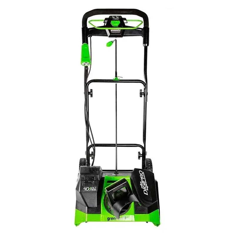 Снегоуборщик Greenworks GD40SB способен очищать территорию от сугробов с шириной захвата 51 см и глубиной 25 см. Во время работы декоративное покрытие не будет повреждено шнеком т.к. он выполнен из прочного, но мягкого пластика.