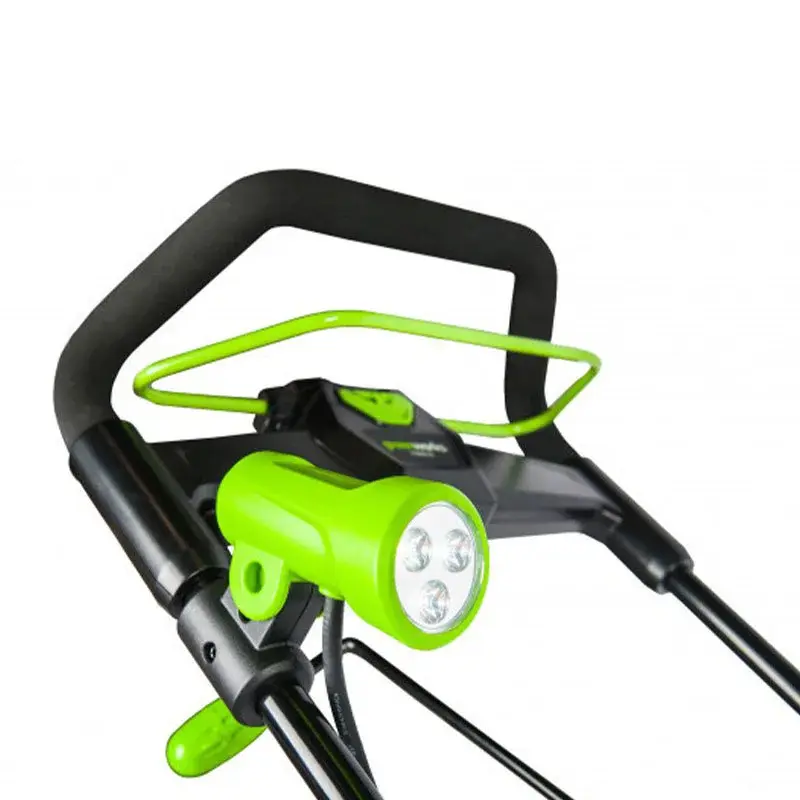 Для запуска Greenworks GD40SB достаточно нажать на соответствующую кнопку. Предварительная подготовка к работе не требуется, что значительно упрощает процесс эксплуатации.