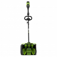 Аккумуляторный снегоуборщик Greenworks прост и удобен в использовании. Блокировка выключателя снимается одним нажатием пальца, поскольку клавиша блокиратора находится непосредственно на пусковом курке. В зависимости от плотности и влажности осадков можно выбрать подходящий скоростной режим. На низких оборотах мощности лопаты вполне хватает для уборки легкого свежевыпавшего снега. При этом энергия батареи расходуется более экономно. Для расчистки больших снежных завалов целесообразно включить вторую скорость.