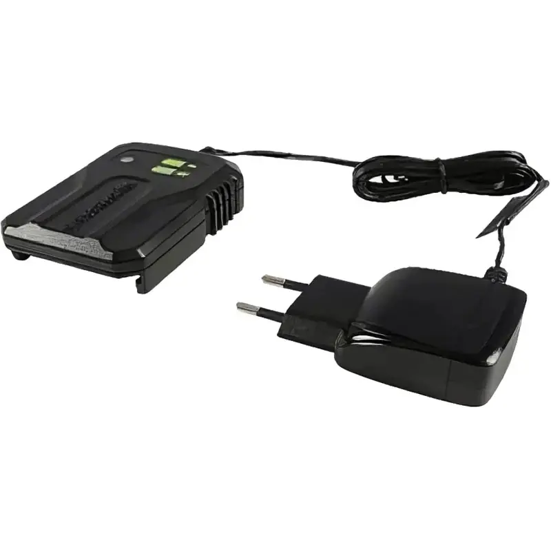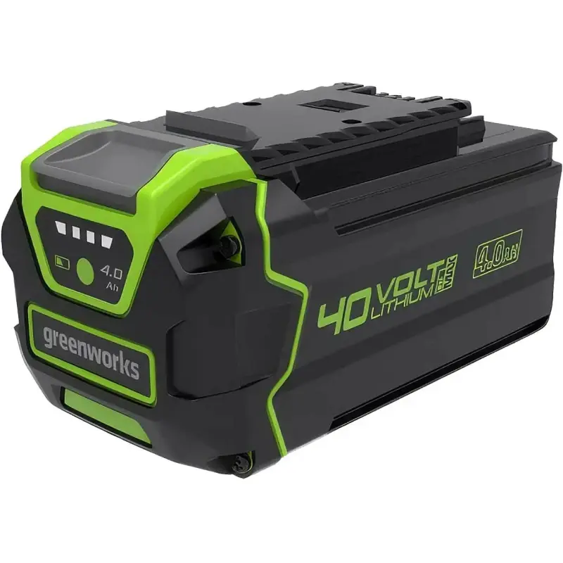 Снегоочиститель питается от Li-Ion аккумулятора напряжением 40 В. Одной зарядки батареи емкостью 4 Ач хватает на 40 минут работы. Время подзарядки составляет 60 минут. Аккумуляторный блок совместим с другой садовой техникой Greenworks из серии G-MAX 40V. Для удобства хранения и транспортировки снегоуборочная лопата разбирается на две части.