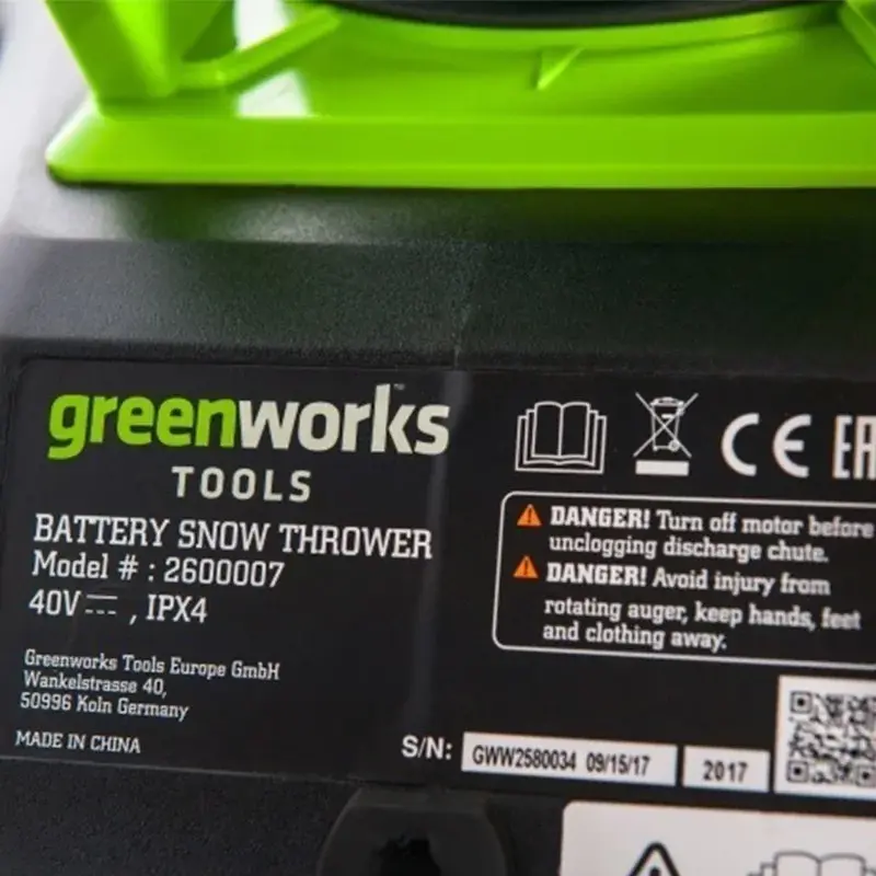Аккумуляторный снегоуборщик Greenworks GD40ST имеет ширину расчистки в 51 см, что позволит эффективно убрать придомовую территорию площадью до 1500 м2.
