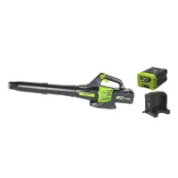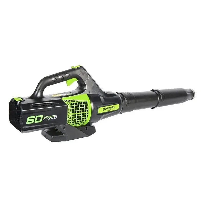 Воздуходув работает от аккумуляторной батареи 60V, которая подходит ко всем устройствам из линейки Гринворкс 60V.