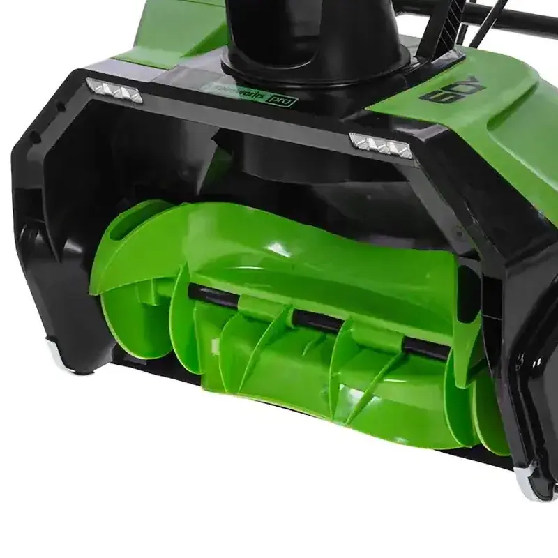 В верхней части ковша расположено 2 светодиодных фонаря. Они освещают пространство для комфортной работы в темное время суток. При включении бесщеточной снегоуборочной машины Greenworks GD60PST 60V подсветка активируется автоматически.