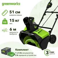 Аккумуляторный снегоуборщик Greenworks GD60PST 60V легко управляется за счет малого веса, а потому отлично подойдет всей семье: женщинам, подросткам или пожилым людям. Модель способна за один проход расчистить дорожку шириной в 50,8 см. Поставляется в комплекте с аккумулятором и зарядным устройством.