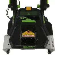 Снегоотбрасыватель GreenWorks GD82 оснащен прорезиненными рукоятками для надежного захвата и комфортной работы. Выходной желоб поворачивается на 180_, его направление регулируется с помощью специального рычага. Наклон дефлектора настраивается вручную, поднимая и опуская его, вы можете откорректировать дальность выброса.