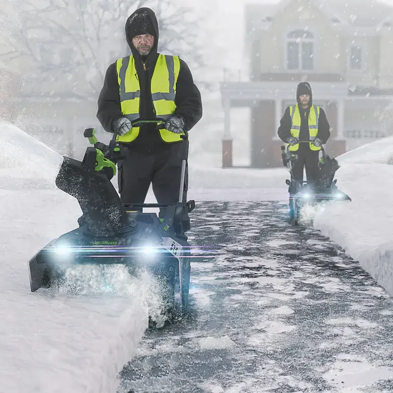 Аккумуляторный снегоуборщик Greenworks GD82ST — легкое и компактное устройство для расчистки от снега веранд, садовых дорожек, придомовой территории. Поставляется в собранном виде — нужно только закрепить желоб. Работает от входящего в комплект поставки 82-вольтового аккумулятора. С помощью колесного уборщика вы можете быстро и аккуратно расчистить снег на большой площади и при этом не устать.