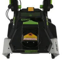 В снегоуборщик Greenworks GD82ST можно установить одновременно две батареи. Дополнительный элемент питания поможет значительно продлить время работы. Во избежание случайного запуска предусмотрен защитный ключ. Если его не вставить, двигатель не запустится. Водонепроницаемая крышка аккумуляторного отсека надежно защищает батареи от влаги.