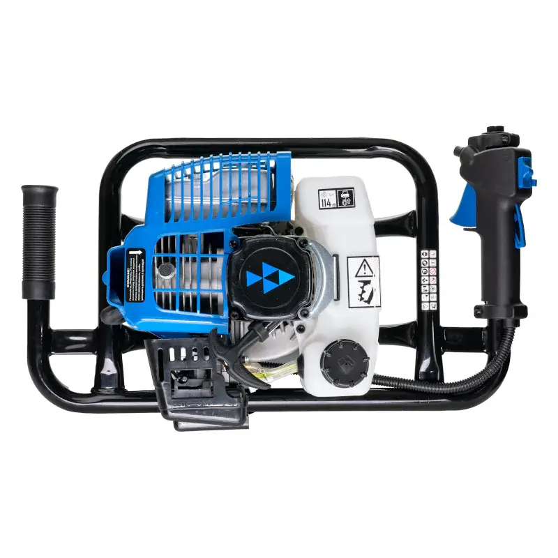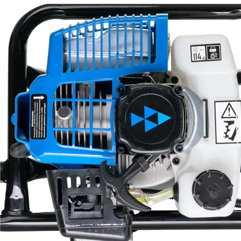 Мотобур оснащен двигателем с мощностью 4,05 л.с., рабочим объемом 72,6 куб.см. и высоким крутящим моментом. Усовершенствованная конструкция позволяет легко справиться с высоким крутящим моментом и при резкой остановке бура не происходит разрушение шестеренок благодаря системе виброгашения.