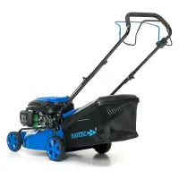 Управление бензиновой газонокосилкой HAITEC осуществляется очень просто — один прижимной рычаг отвечает за включение привода на колеса, другой — за вращение ножа. При отпускании рукоятки и потере контроля над рабочим процессом косилка прекращает движение, а нож перестает вращаться. Машина самостоятельно перемещается с постоянной скоростью. Вам остается лишь направлять ее в нужную сторону. Одной заправки бензобака емкостью один литр хватает на обработку участка площадью до 800 м2.