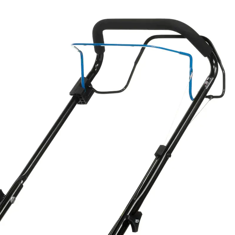 Двухсоставная рукоятка складывается для удобства хранения и перевозки газонокосилки HAITEC HT-RM420. Колеса на подшипниках отличаются плавным ходом и легко преодолевают кочки и неровности.