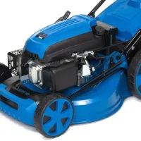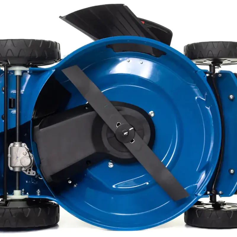 Бензиновая газонокосилка HAITEC с шириной скашивания 51 см оснащена двигателем мощностью 6,5 л.с. Завести четырехтактный мотор можно как с помощью электрозапуска, так и обычным ручным стартером.