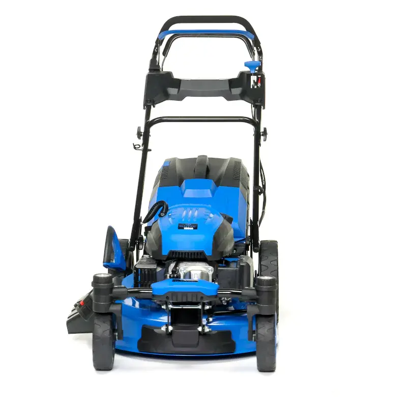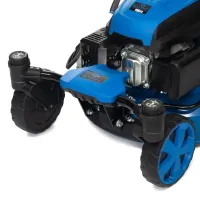 Бензиновая газонокосилка HAITEC с двигателем мощностью 6,5 л.с. рассчитана на уход за участками площадью до 1700 м2. Длина ножа 51 см позволяет скашивать широкую полосу за один проход, что ускоряет обработку территории. Особенность модели – поворотные передние колеса, за счет чего газонокосилку можно развернуть на одном месте, а также проходить узкие участки, косить траву на газонах сложной формы. При необходимости движения по ровной линии колеса можно зафиксировать в прямом положении.