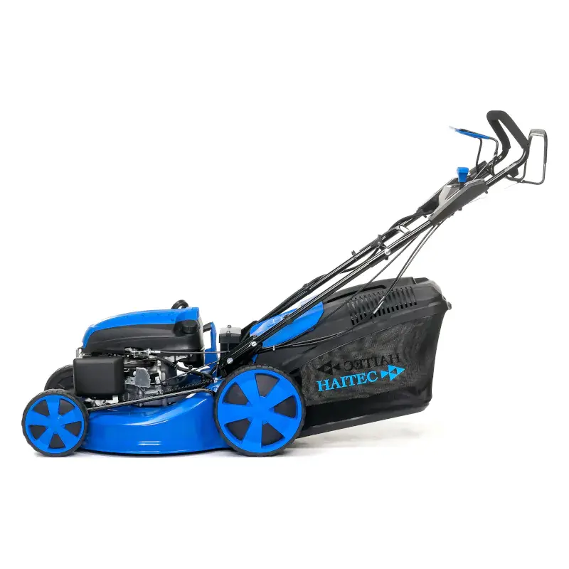 Бензиновая газонокосилка HAITEC оснащена 4-тактным мотором мощностью 6,5 л.с. Ширина скашивания 53 см позволяет обработать обширный участок за небольшое число проходов. Быстрому и легкому запуску двигателя способствует наличие электрического стартера.