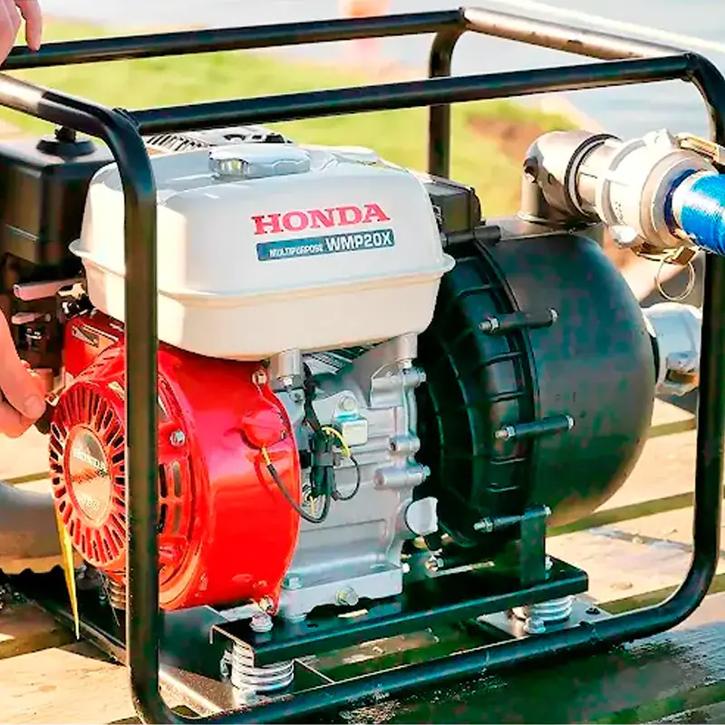 Бензиновая мотопомпа Honda WMP 20 X1 - универсальная мотопомпа, которая может использоваться для полива и как противопожарная. При этом главная её особенность то, что её можно использовать для перекачки химически-активных жидкостей и солёной воды. Антикоррозиционная стойкость обеспечивается материалом помпы - особо прочным специальным пластиком.