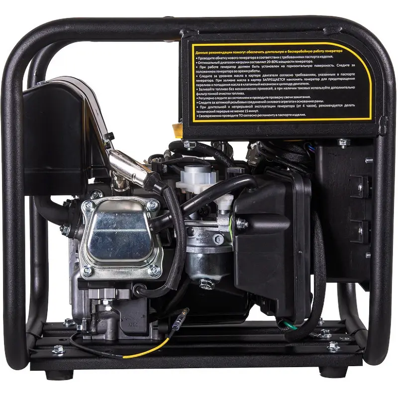 В модели HUTER DN1450i четырехтактный двигатель с воздушным охлаждением и защитой от перегрузки, который вырабатывает мощность 1,1-1,3 кВт.
