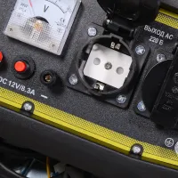 Для подключения техники на панели управления генератора есть 2 розетки 220 В. Каждая оснащена защитной крышкой, чтобы исключить попадание пыли, грязи и влаги внутрь.