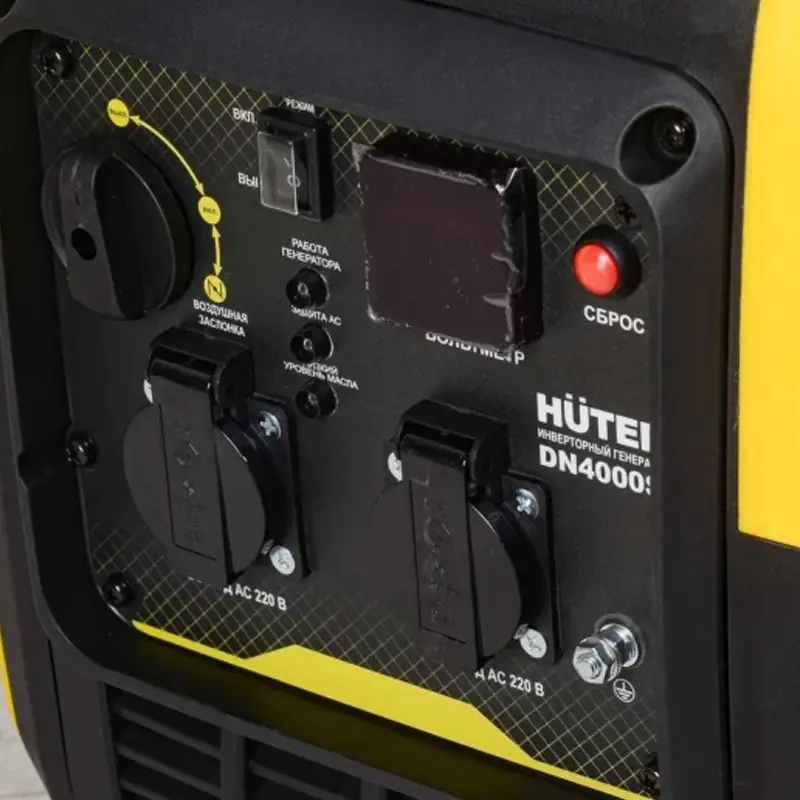 При подключении маломощных устройств, не имеющих высоких пусковых токов, целесообразно переключить генератор в экономичный режим работы. В этом случае блок управления автоматически подстраивает обороты двигателя под подключенную нагрузку. В результате снижается расход топлива и уменьшается уровень шума. Генератор HUTER DN4000Si имеет защиту от недолива или отсутствия моторного масла. Если уровень смазки опустится ниже предельного, масляный датчик отключит двигатель.