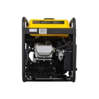 В двигателе бензогенератора HUTER DN7500i используется медная обмотка альтернатора, которая имеет малое электрическое сопротивление и высокую электропроводность. Генератор с корпусом открытого типа удобно обслуживать и ремонтировать. Для защиты двигателя используется металлическая рама. Внизу она образует устойчивое основание, а в верхней части выступает в качестве рукояток.