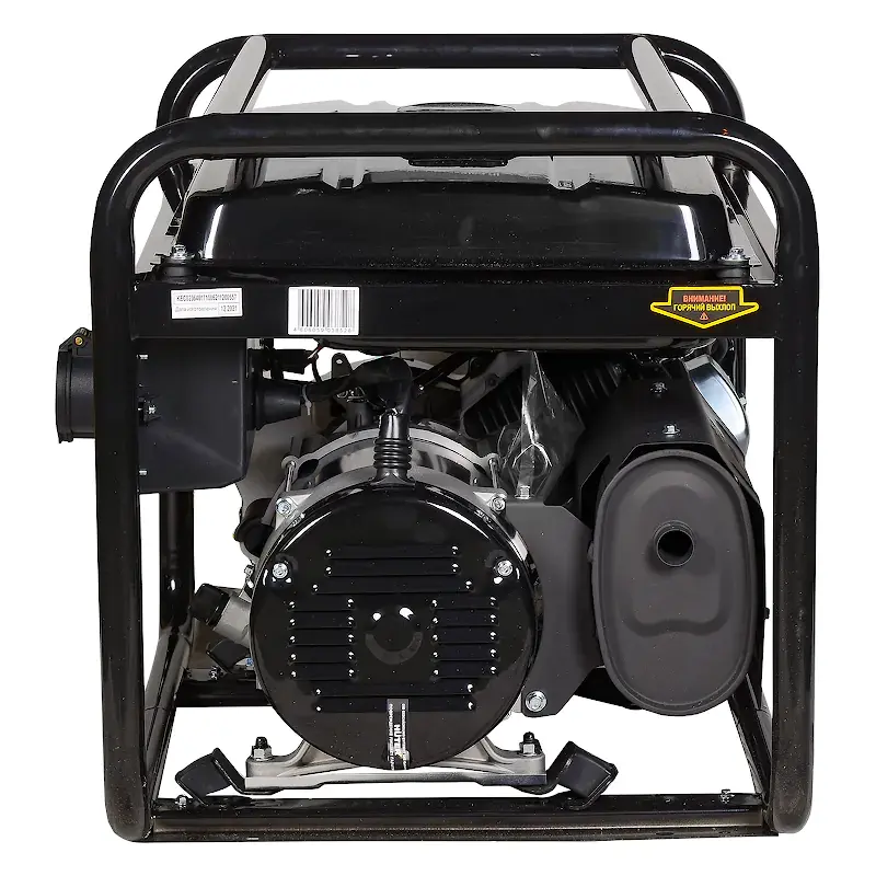 Для подключения потребителей используются три розетки переменного тока 220 В: две бытовые на 16 А и силовая на 32 А. Аналоговый вольтметр наглядно показывает величину подаваемого напряжения. Лампочка индикатора низкого уровня масла сигнализирует о необходимости пополнения смазки.