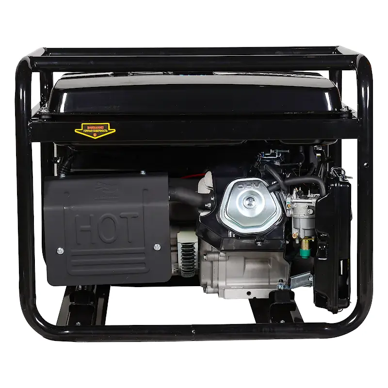 Потребителей электроэнергии можно подключать к двум розеткам переменного тока 220 В на 16 А или силовой розетке 220 В на 32 А. Индикаторы на лицевой панели бензинового генератора сигнализируют о низком уровне моторного масла и топлива. В комплект поставки входят: силовая вилка на 32 А, ключ электростартера, провода и детали лотка аккумуляторной батареи, а также комплект резиновых опор для устойчивости конструкции и снижения вибрации.