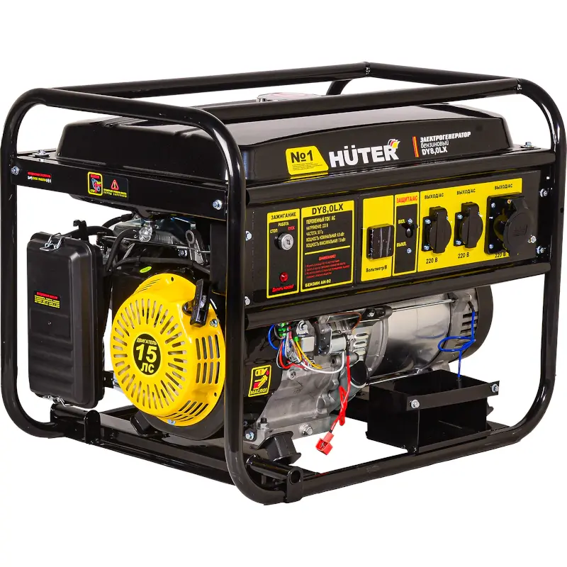Электрогенератор Huter DY8,0LX – портативная компактная электростанция, обеспечивающая электроснабжение бытовой техники и профессионального оборудования, питающегося от стандартной сети 220 Вольт. Это выгодный бензиновый электрогенератор, с оптимальными техническими характеристиками и низким расходом топлива.