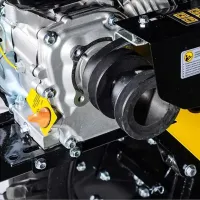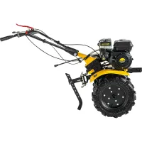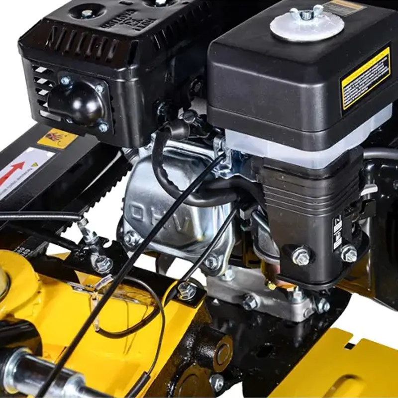 Четырехтактный двигатель мощностью 7,8 л.с. имеет автоматическую регулировку частоты вращения и датчик масла. Надежный шестерёнчато-цепной редуктор спрятан в чугунный корпус.