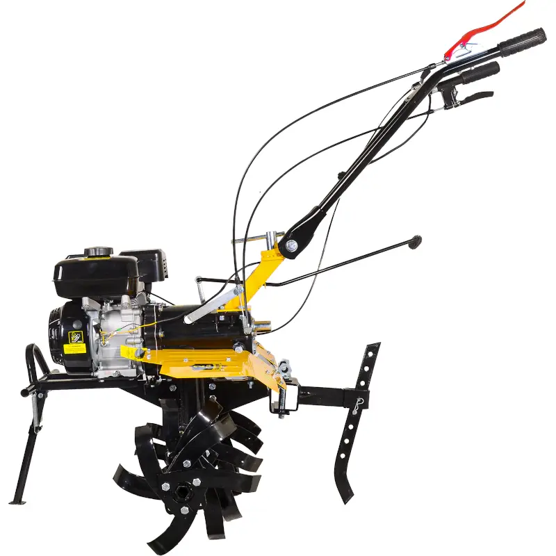 Сельскохозяйственная машина HUTER МК-8000РL поставляется с комплектом фрез, обеспечивающих вспашку почвы на ширину 100 м и глубину до 30 см. Агрегат имеет универсальное применение благодаря возможности установки навесного оборудования, такого как плуг, сошник или окучник. Мотоблок оснащен четырехтактным двигателем с воздушным охлаждением мощностью 8 л.с., который заводится с помощью ручного стартера. Шестеренчатый редуктор в масляной ванне обеспечивает продолжительный срок службы машины.
