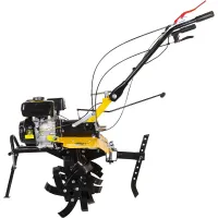 Благодаря системе легкого запуска бензиновый мотоблок без проблем заводится в любую погоду. Большие колеса с глубоким протектором обеспечивают высокую проходимость даже по рыхлой и влажной земле. Саблевидные фрезы из закаленной стали легко врезаются в почву. Глубину вспашки можно регулировать путем перестановки сошника.