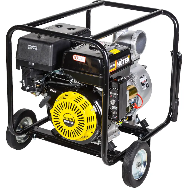 Мотопомпа Huter MPD-100 предназначена для орошения сельскохозяйственных участков, подачи больших объемов воды, а также для откачки воды из колодцев. Благодаря бензиновому двигателю агрегат не зависим от электрической сети, способен перекачивать до 1080 литров чистой воды за 1 минуту. Благодаря металлической раме механизм мотопомпы защищен от повреждений. Два колеса с покрышками позволяют быстро перемещать аппарат с минимумом усилий.