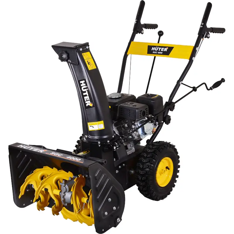 Бензиновый снегоуборщик Huter SGC 4000 – это младшая самоходная модель в линейке. Металлический ковш с шириной захвата 56 см счищает сугробы глубиной до 42 см. Для запуска мотора предусмотрен ручной стартер.