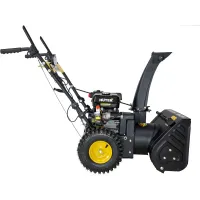 Самоходный бензиновый снегоуборщик не нужно толкать по участку. Передвижение контролируется несколькими скоростями на выбор, 4 передними и 2 задними. Это поможет подобрать комфортный темп работы. Задний ход пригодится при разворачивании на узких дорожках, а также во время парковки.