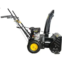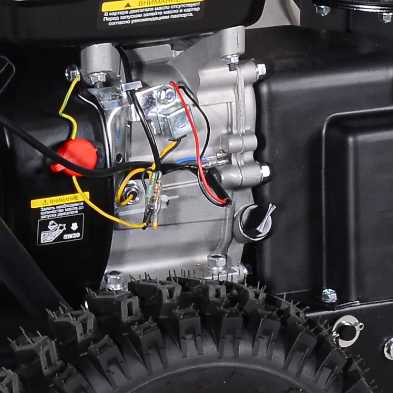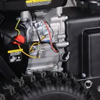 6-ступенчатая коробка передач позволяет адаптировать бензиновый снегоочиститель под конкретные условия работы и скорость уборки. Высота захвата составляет 56 см, что подходит для чистки глубокого снега. При необходимости можно увеличить или уменьшить обороты двигателя с помощью рычажка на корпусе. Функция поможет ускорить процесс уборки или снизить потребление бензина.