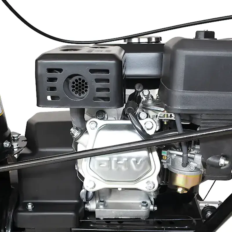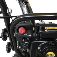 Снегоочиститель оснащен мощным двигателем Huter объемом 244 см3, что обеспечивает его высокую производительность. Максимальная дальность отбрасывания снега составляет 15 м, направление и угол выброса легко регулируются рычагами на панели оператора.