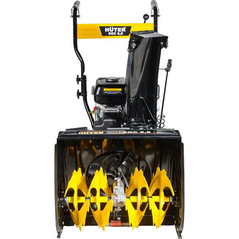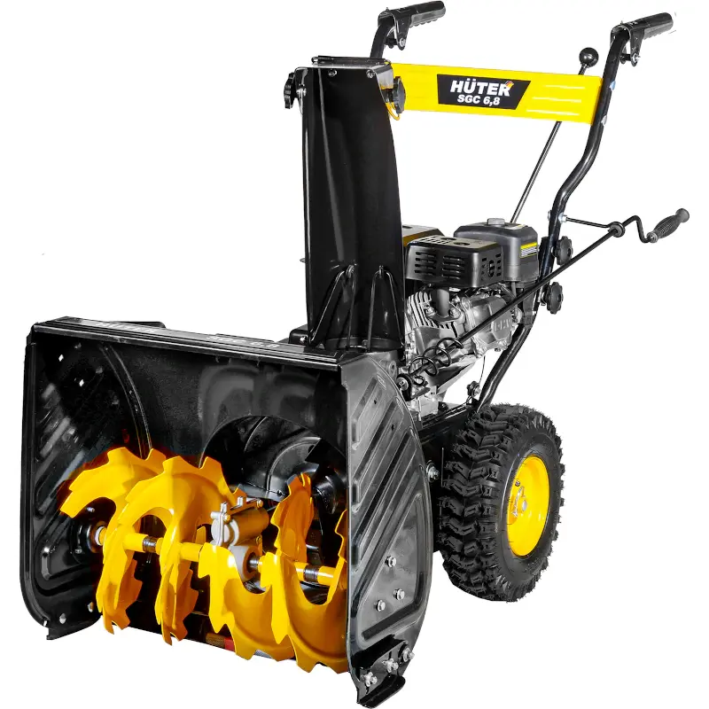 Закрепленная на корпусе лопатка помогает очищать шнек и желоб от засоров и наледи. При помощи регулируемых опор можно изменять высоту ковша над землей для повышения качества уборки. Если поверхность неровная, используется среднее или нижнее положение. Возможность разблокировки межколесного дифференциала позволяет легко разворачивать снегоуборщик Huter SGC 6,8 на месте, не прикладывая излишних усилий.