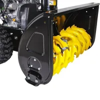 Поворот желоба для выброса снежных масс настраивается соответствующим рычагом. Это позволит избежать забрасывания снегом уже расчищенной территории.