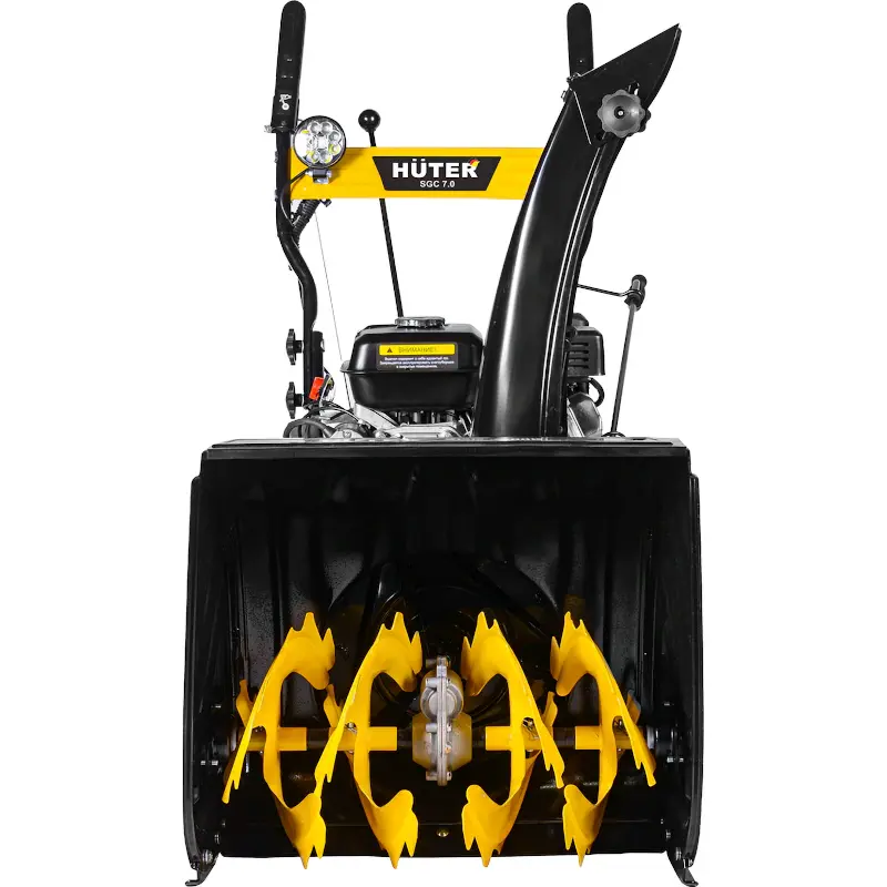 Бензиновый снегоуборщик Huter SGC 7,0 оснащен двигателем мощностью 7 л.с и рассчитан на уборку сугробов высотой до 54 см. Для комфортной работы предусмотрено несколько скоростей передвижения, большие колеса с агрессивным протектором и регулировка желоба выброса снега.