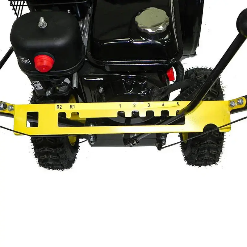Бензиновую снегоуборочную машину не нужно толкать по участку. Для перемещения есть несколько скоростей на выбор: 5 передних и 2 задние. Это поможет выбрать комфортный темп работы и сэкономит ваши силы.