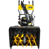 Ковш с шириной захвата 62 см позволит быстро убрать даже большой участок площадью до 2000 м2. А металлический шнек с зубьями разрушит плотные комки снега.